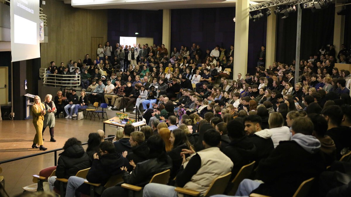 Eine Feedback-Runde in der Studiobühne unserer Gesamtschule rundete den Abend ab. Die Rückmeldungen der Schülerschaft, aber auch der Referent*innen fielen durchweg positiv aus.