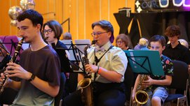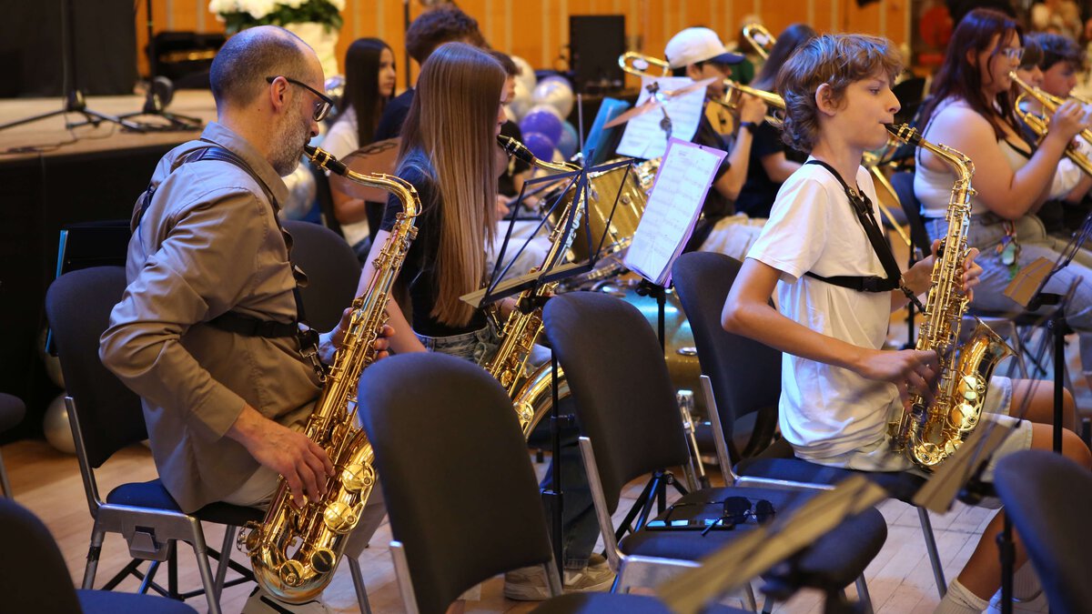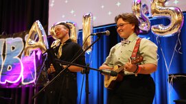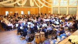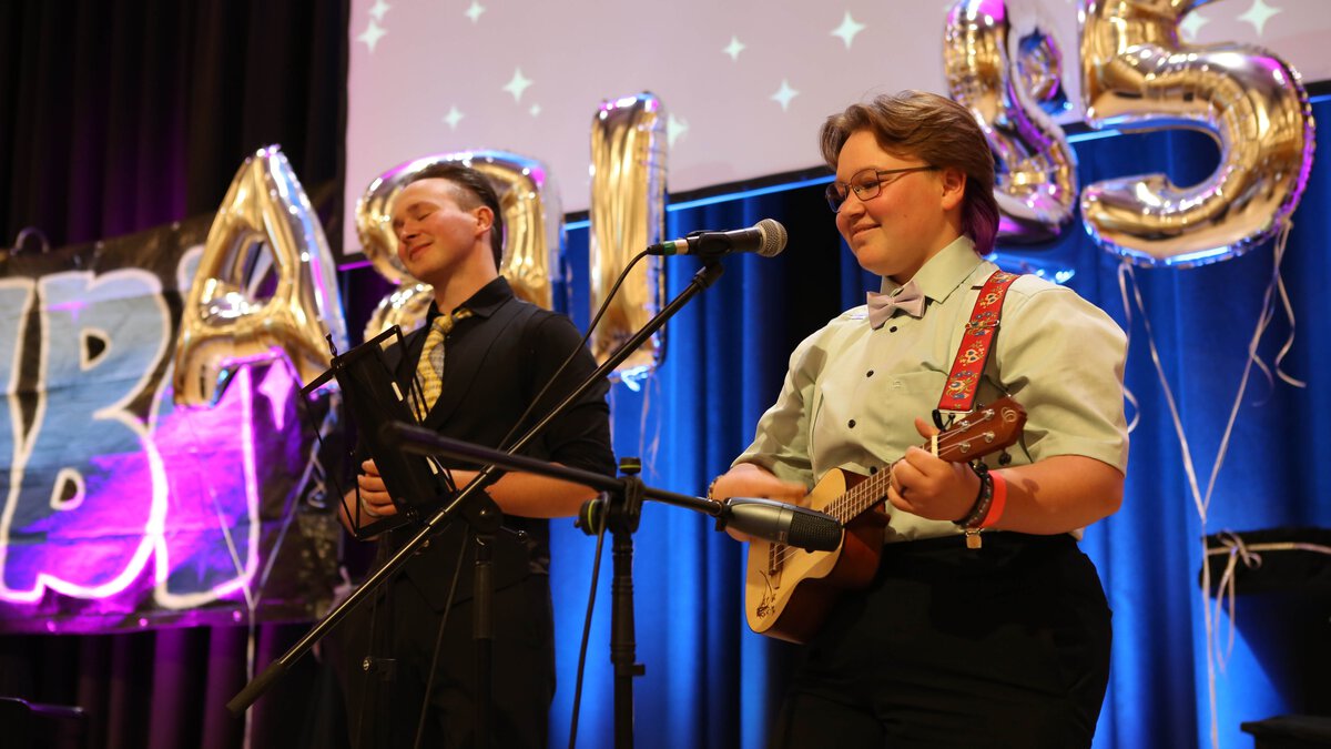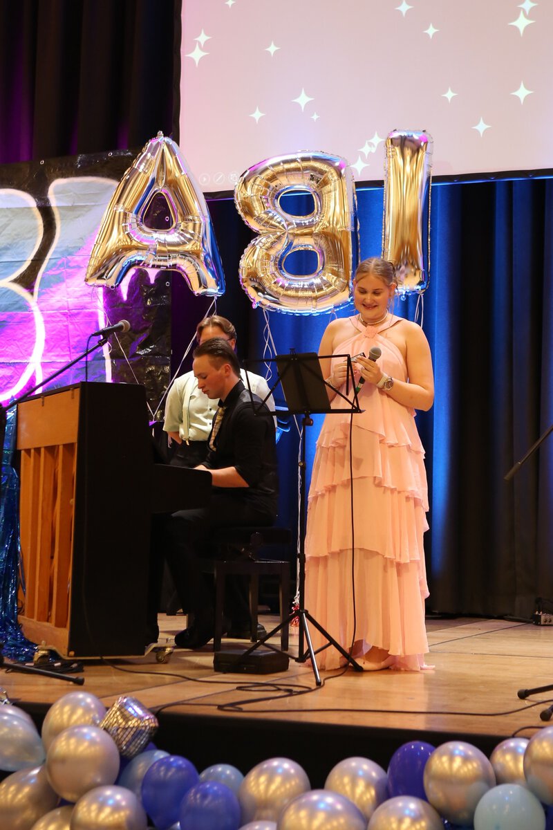 Zwischen den Wortbeiträgen sorgten die Musikklasse 8F und die Bigband für musikalische Abwechslung, Hannah T., die von Vincent R. am Klavier begleitet wurde, sang „Piano Man“ und Rebecca und Vincent R. stimmten im Duett „I Lava You“ an.