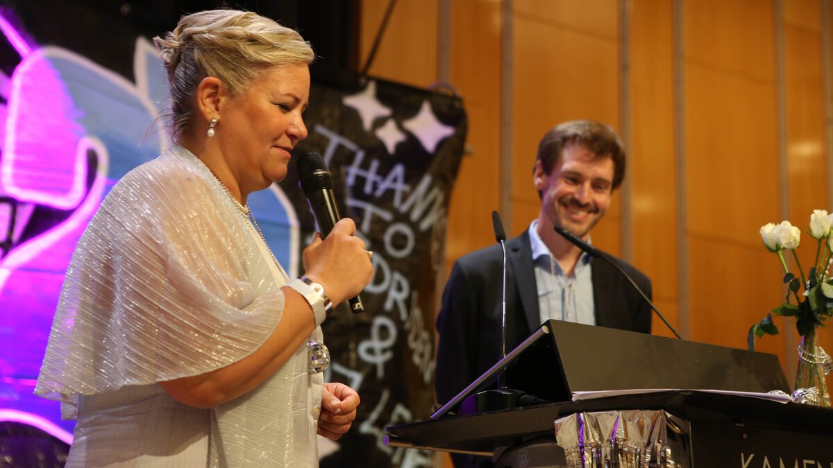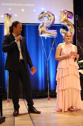 Auch die beiden Beratungslehrkräfte, Frau Dryden-Stys und Herr Lenz, die den Jahrgang durch alle Höhen und Tiefen äußerst kompetent und zugewandt begleitetet haben, nahmen humorvoll und emotional von ihren Schüler*innen Abschied.