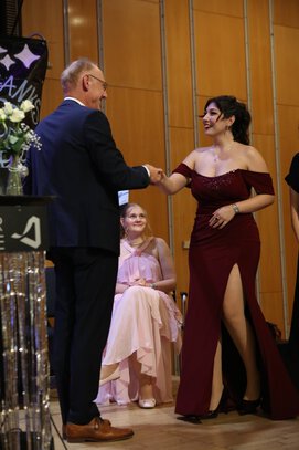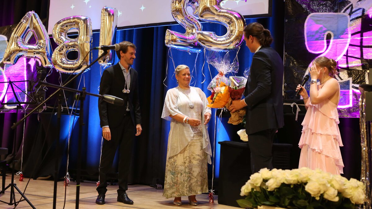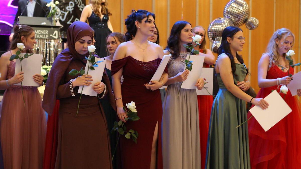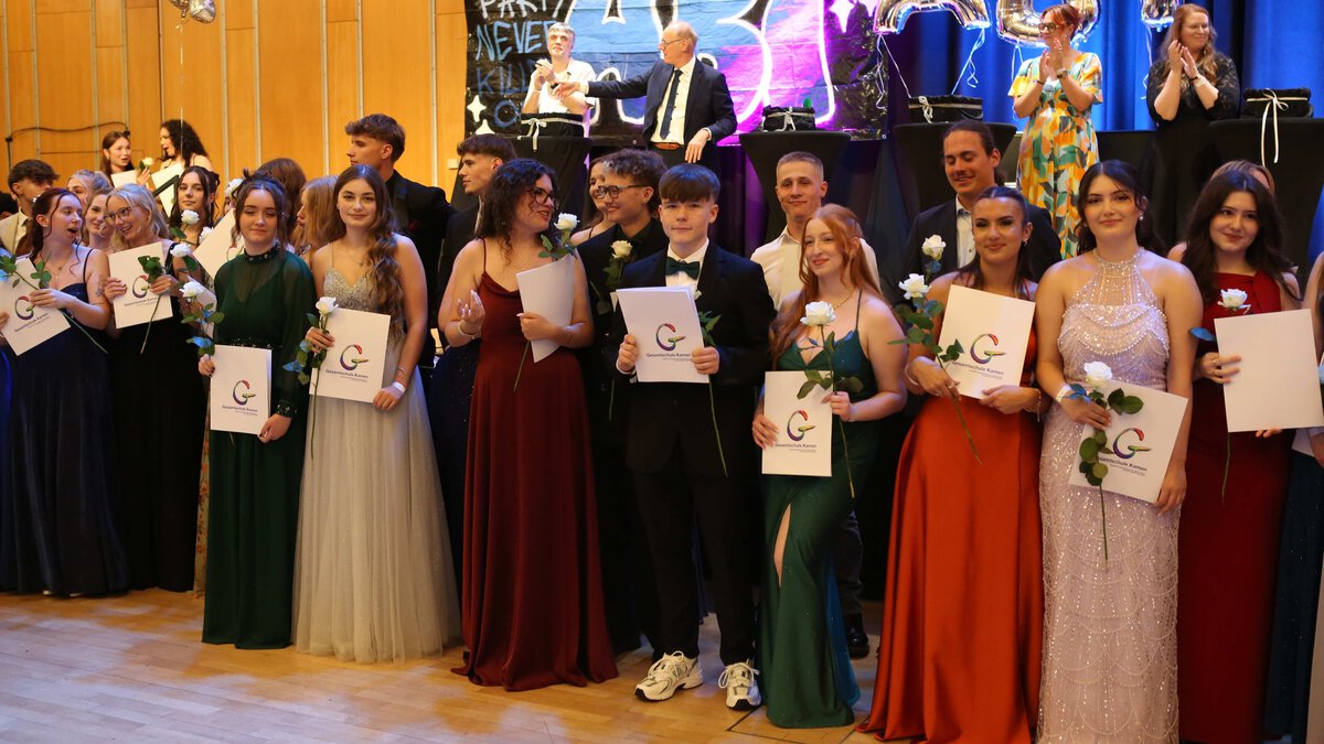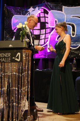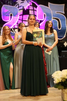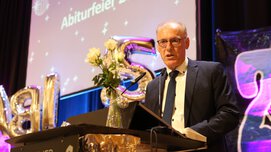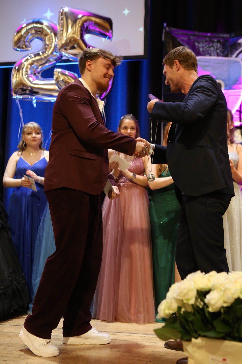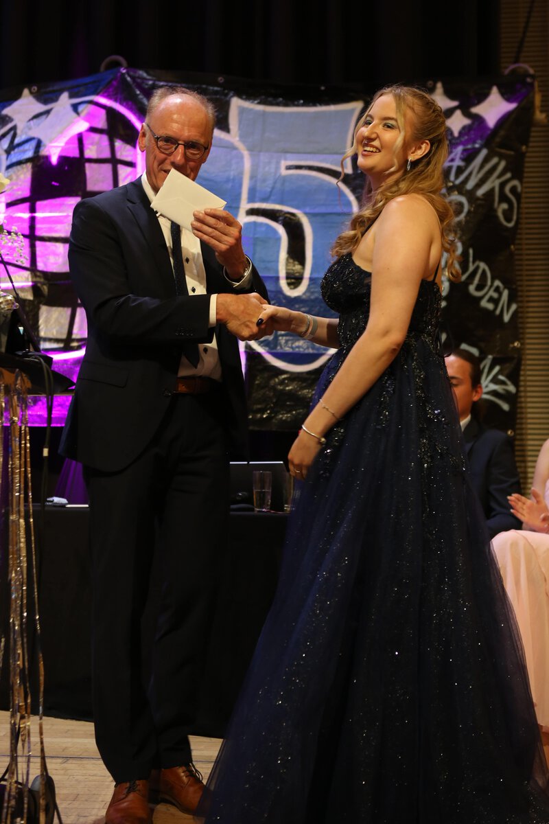 Schließlich rückte der große Augenblick näher: die Zeugnisvergabe. Zuvor jedoch ehrte unser Abteilungsleiter Herr Tillmann diejenigen Schüler*innen, die ihr Abitur mit einer Eins vor dem Komma bestanden haben, und zeichnete Beke B. und Philina L. für ihr besonderes schulisches und soziales Engagement aus. Der Sonderpreis für die auffallendste positive schulische Entwicklung ging an Tuana E. Außerdem wurden herausragende Leistungen in der Abiturprüfung in den Fächern Mathematik, Religion und Chemie geehrt.