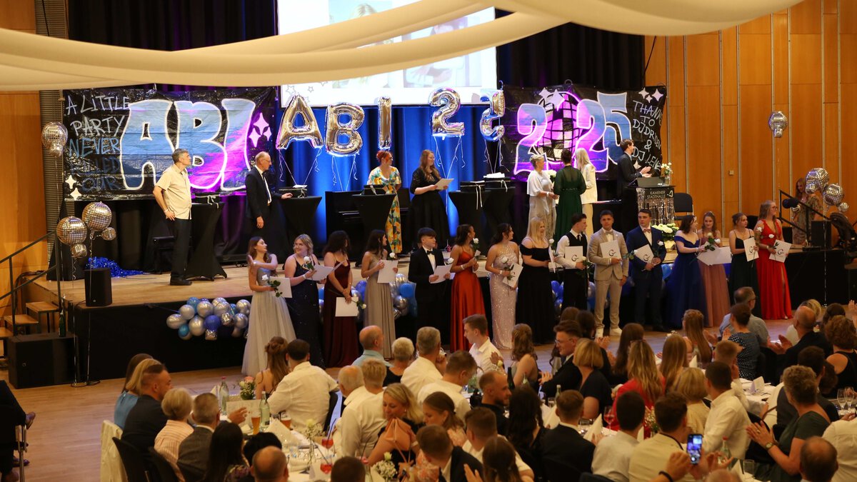 In der festlich geschmückten Stadthalle verabschiedeten wir uns am Samstag, dem 28.06.2025, unter dem Motto “A little party never killed our Abi” feierlich von unserem Abiturjahrgang 2025.