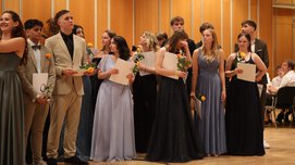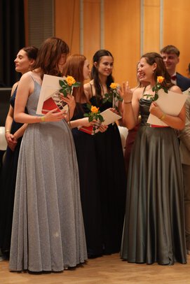 Mit diversen musikalischen Beiträgen, Reden und Ehrungen verging die Zeit bis zum großen Augenblick, der Ausgabe der Abiturzeugnisse und Fachabiturzeugnisse, wie im Flug.