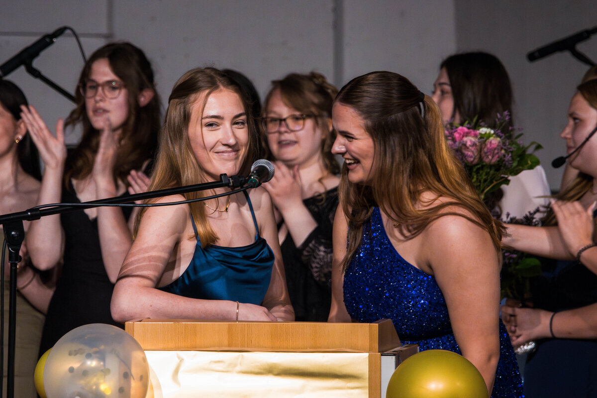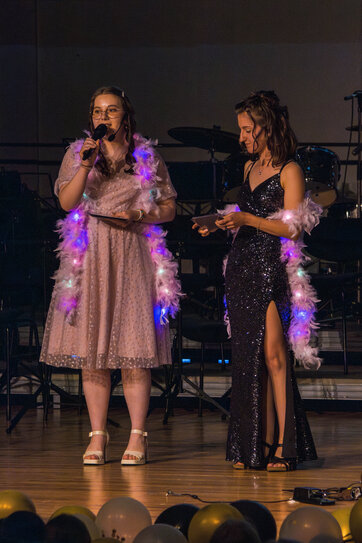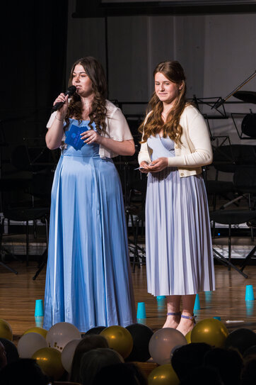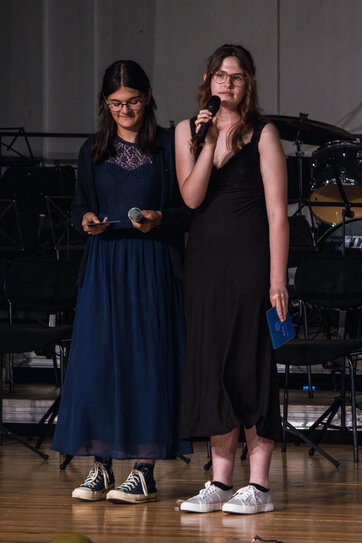 In einem rhetorisch ausgefeilten Beitrag der Schülerschaft führten Alicia Newe und Lilly Last aus dem Abschlussjahrgang das Publikum durch die Highlights jeder Klasse, ohne dass bei den Zuhörenden viel Lächeln und auch so manche Träne ausblieben.