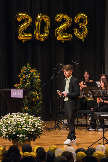 Nach der offiziellen Zeugnisverleihung entließ der Abteilungsleiter Herr Heiming die 162 Schüler*innen offiziell aus der Schule, wobei zu bemerken ist, dass rund 80 Schüler*innen im kommenden Schuljahr unsere gymnasiale Oberstufe besuchen werden.