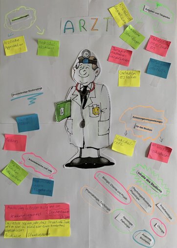 Insgesamt gestalteten sie ihre Schnupperstunden als „blended“ Berufsorientierung: So wurden Elemente der digitalen Praktika sehr engagiert durch die Arbeit mit den iPads und auch die klassische Plakatgestaltung ergänzt.