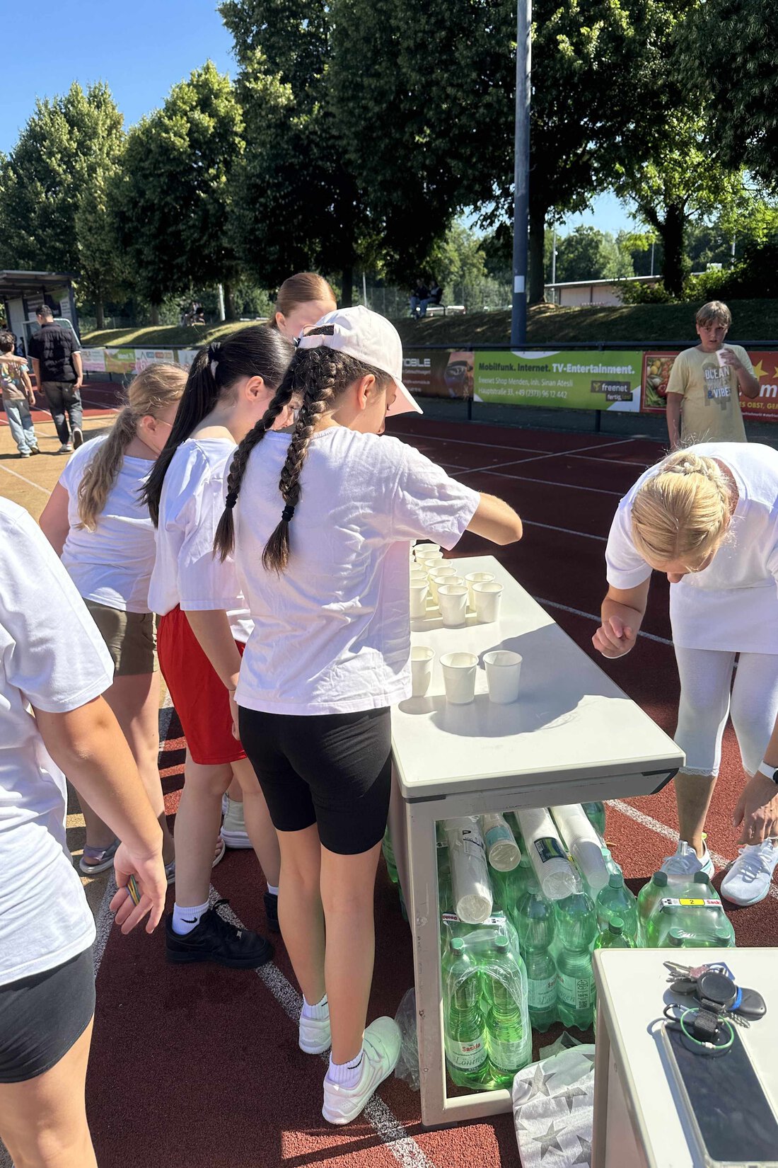 Bei schönstem Sommerwetter und bester Stimmung traten die einzelnen Musikklassen an, tatkräftig unterstützt von unseren Schulsporthelfer*innen, und liefen, gingen oder walkten Runde um Runde. Auch für Erfrischungen in Form von Getränken war gesorgt.