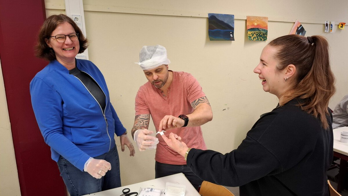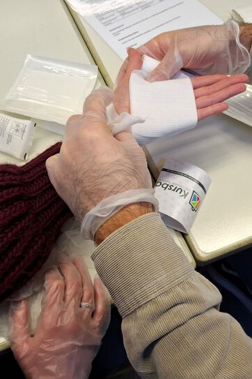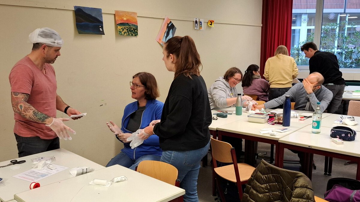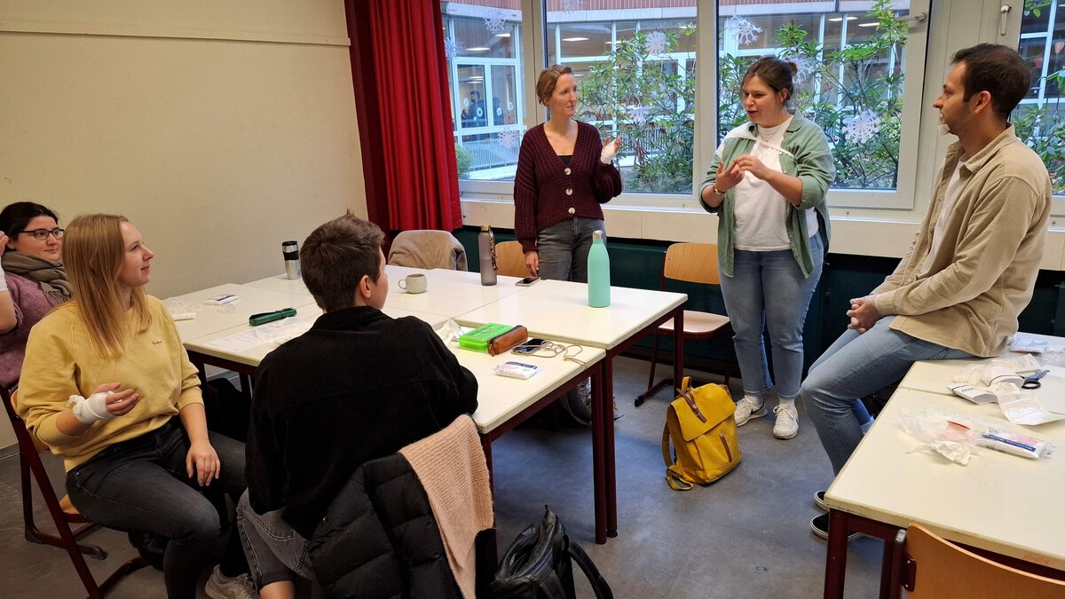 Im Mittelpunkt der Fortbildung stand das richtige Verhalten bei Unfällen. Dabei wurde den Lehrkräften vermittelt, wie sie in einer Notfallsituation ruhig und besonnen handeln können, um den Betroffenen schnellstmöglich zu helfen. Neben der schnellen Hilfe war es auch wichtig, das Bewusstsein für die eigene Sicherheit sowie die der anderen zu schärfen, um weitere Gefahren zu vermeiden. Die Teilnehmer*innen wurden mit den wesentlichen Handgriffen vertraut gemacht, die bei unterschiedlichen Wunden und Verletzungen erforderlich sind. So lernten sie nicht nur die korrekte Erstversorgung von Schnitt- oder Schürfwunden, sondern auch, wie man mit schwereren Verletzungen, wie zum Beispiel Brüchen oder Verbrennungen, umgeht.