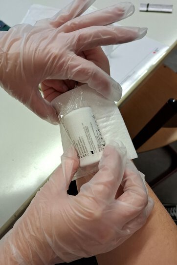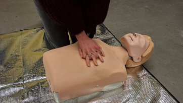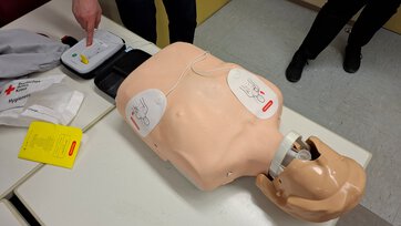 Ein besonders wichtiger Bestandteil der Fortbildung war die Herz-Lungen-Massage, eine Maßnahme, die im Falle eines plötzlichen Herzkreislaufstillstands lebensrettend sein kann. Hier übten die Kolleg*innen an Übungspuppen die richtige Technik, um effektiv und schnell eingreifen zu können. Zudem wurden alle Teilnehmenden in die Nutzung eines Defibrillators eingeführt – einem Gerät, das im Notfall den Herzrhythmus wiederherstellen kann. Der Umgang mit diesem Gerät ist einfach, aber entscheidend, und wurde in der Fortbildung anhand realistischer Notfallszenarien geübt.