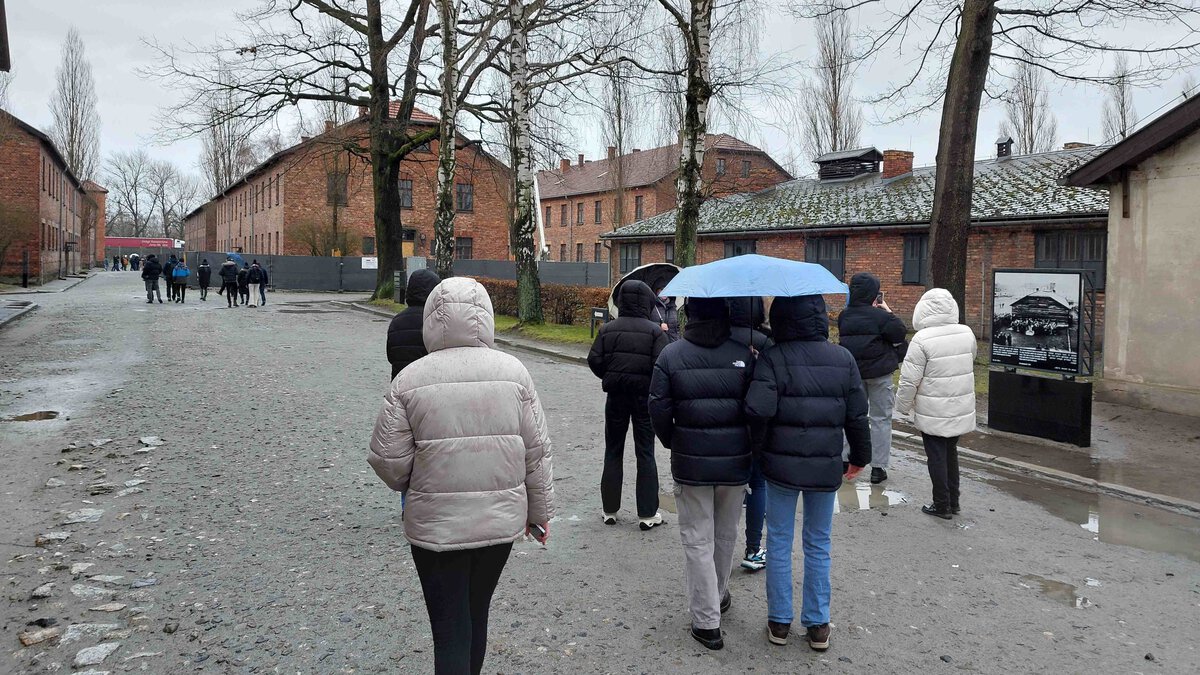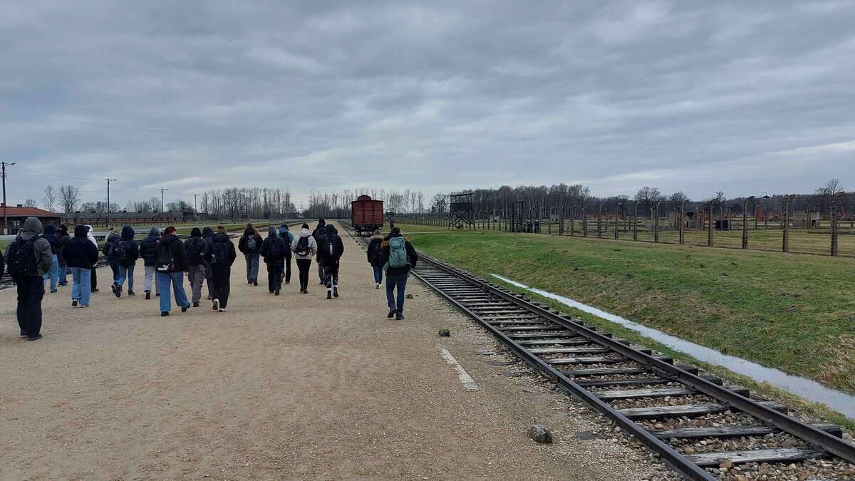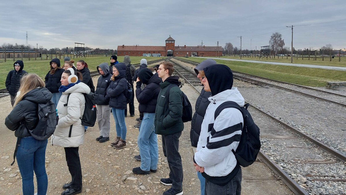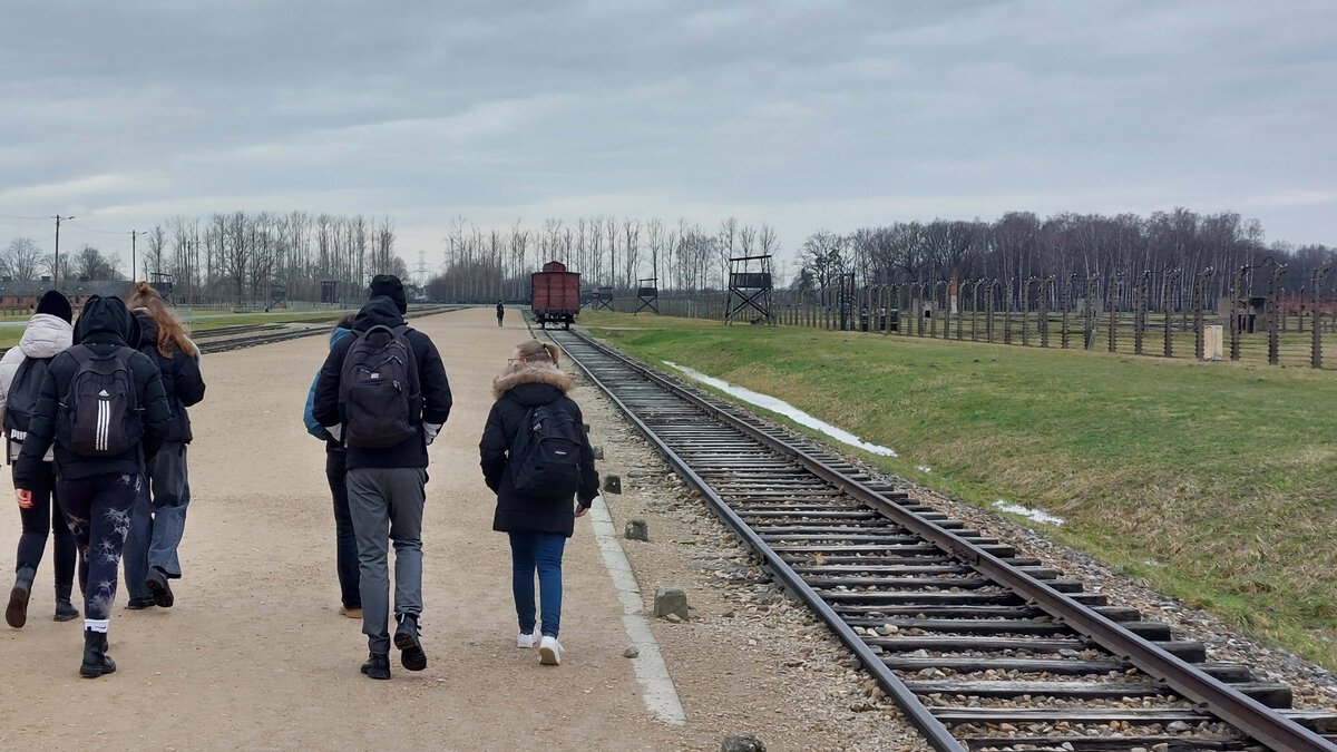 Seit den Sommerferien bereiteten sich die Schüler*innen des Kurses auf die Studienfahrt vor, näherten sich über vielfältige Zugänge dem Holocaust sowie im Speziellen dem Ort Auschwitz an. Und gleichwohl bleibt die Konfrontation mit dem Holocaust konkret vor Ort eine emotionale wie kognitive Herausforderung. Wenn sich Auschwitz überhaupt begreifen lässt, dann wohl am ehesten vor Ort, wenn man an Gleisen steht, an denen „SS-Ärzte“ in Sekundenschnelle über Leben und Tod entschieden, wenn man von der „Rampe“ aus über Wege geht, über die vor Jahrzehnten Menschen ihre letzten Schritte in die Gaskammern gegangen sind, Wege, auf denen die Asche der Ermordeten verstreut wurde. Und am Ende bleibt, dass man es trotz der Eindrücke nicht begreifen kann. Unser Guide meinte nach zwei intensiven Tagen im Stammlager und in Birkenau, dass das jetzt für uns ein erster Anfang in der Auseinandersetzung mit Auschwitz gewesen sei.