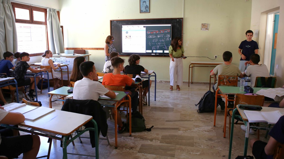 Unsere Gruppe wurde überaus herzlich von der Schulleiterin Panagiota Menega begrüßt. Mit einer sehr emotionalen Chordarbietung wurde anschließend das Programm in der griechischen Schule eröffnet – Kaffee und selbstgebackene Kuchen durften dabei natürlich nicht fehlen. Im Anschluss hatten wir die Möglichkeit, mit den griechischen Kolleg*innen die jeweiligen Schulsysteme und Digitalisierungsfortschritte zu vergleichen und diskutieren. Außerdem gab es auch interessante Einblicke in die in Griechenland eingesetzten Programme und Softwaremöglichkeiten beim Besuch im Fachunterricht Mathematik und Englisch.
