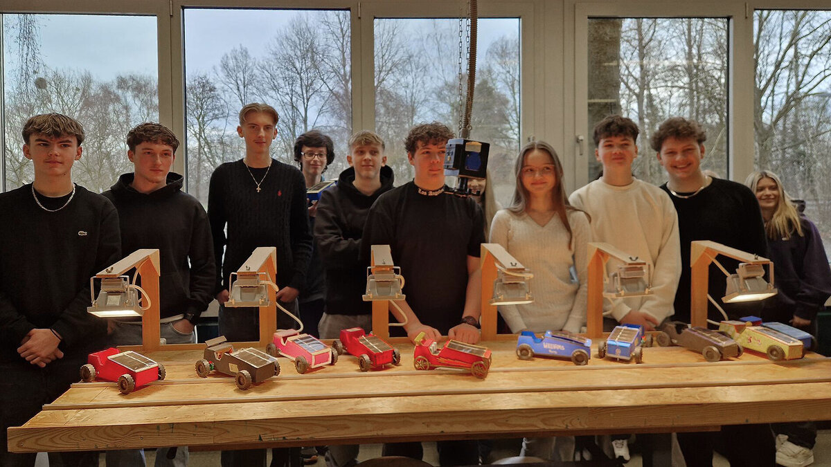 Im vergangenen Halbjahr haben sich die 10. Klassen im Fachbereich Technik im Unterricht bei Frau Stute und Herrn Bruns mit dem Thema „Verkehrstechnik“ befasst und unter anderem neben theoretischen Inhalten wie verschiedenen Antriebs- und Sicherheitssystemen auch praktisch gearbeitet. Entstanden sind vielfältige Solarrenner, die am vergangenen Dienstag in zwei Kategorien beim 1. Solarrennen gegeneinander antreten konnten. So wurde einmal die Schnelligkeit unter Beweis gestellt und im zweiten Wettbewerb das Aussehen und die Ausgestaltung der Solarrenner.