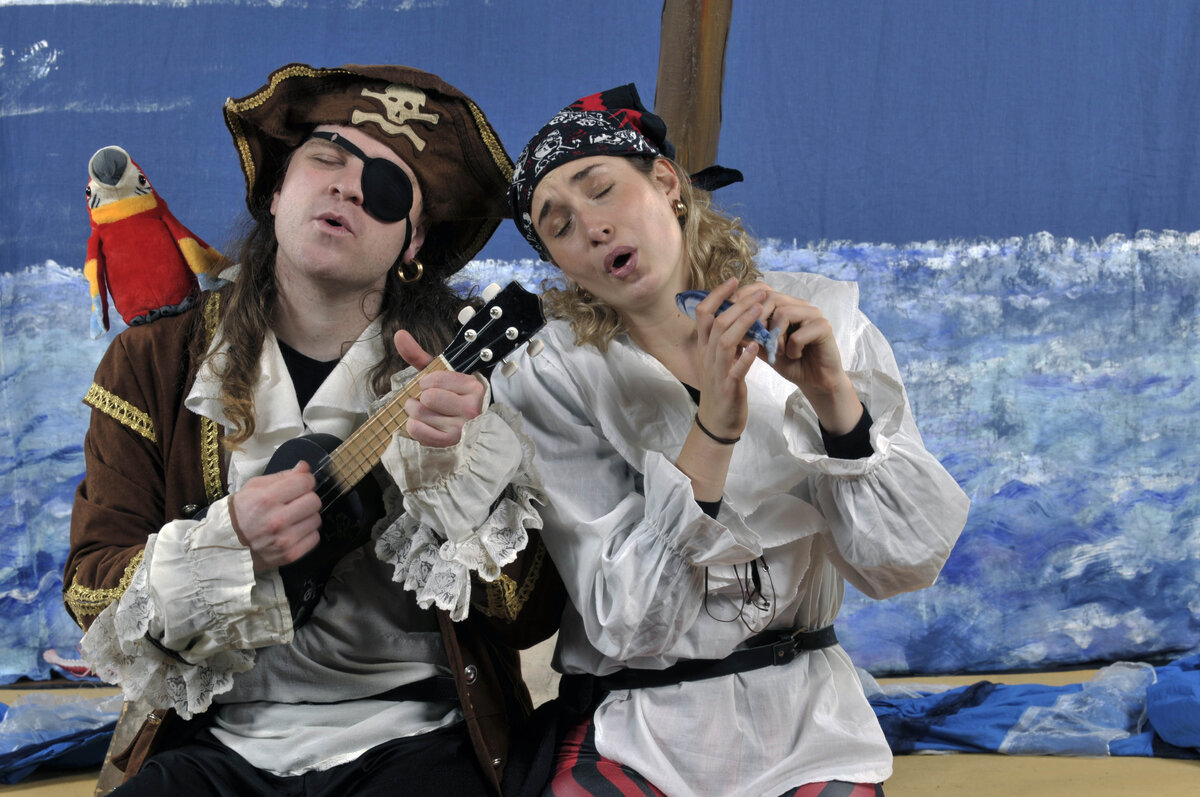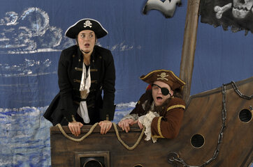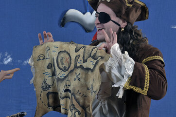 Die Jahrgänge 5 und 6 schauten das Stück "Ahoy, there!", welches für große Begeisterung sorgte. Die Schüler*innen durften zwei Piraten auf ihrer abenteuerlichen Schatzsuche begleiten und wurden an unzähligen Stellen mit in das Stück einbezogen. Die Klassen waren so begeistert, dass die Theatergruppe nach den Aufführungen sogar noch für Selfie- und Autogrammwünsche angefragt wurde.
