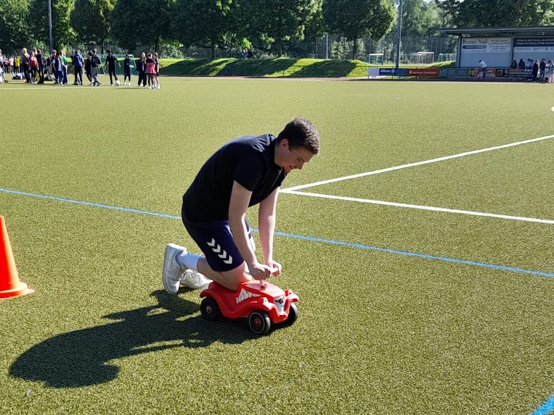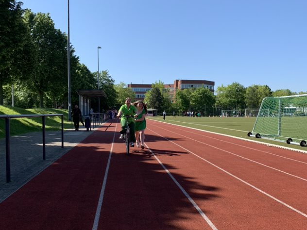 Bei strahlendem Sonnenschein sporteteln sie - zum Teil verkleidet - um die Wette. Zwischendurch wartete zur Abkühlung ein Wassereis auf die Abschlussathleten.