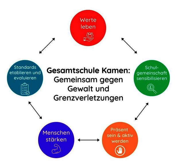 Es umfasst Prävention, Intervention und verbindliche Verhaltensregeln, um eine Kultur des Respekts, der Achtsamkeit und des füreinander Einstehens zu stärken. Dazu gehören für uns: