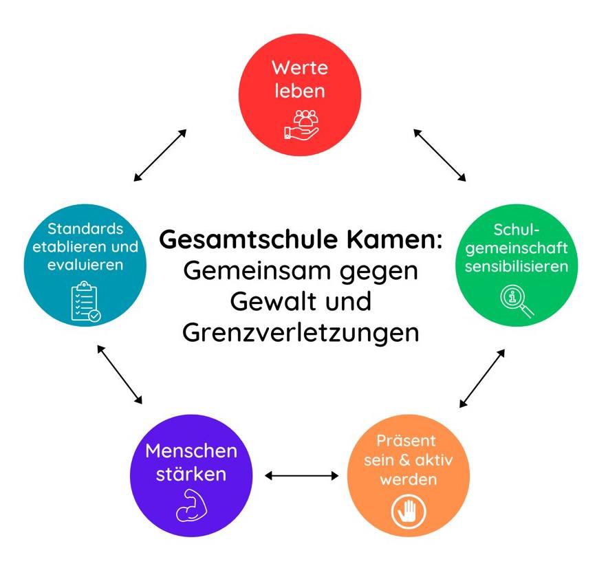 Es umfasst Prävention, Intervention und verbindliche Verhaltensregeln, um eine Kultur des Respekts, der Achtsamkeit und des füreinander Einstehens zu stärken. Dazu gehören für uns: