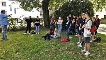 Bereits zum zwölften Mal führte die Gesamtschule Kamen am 10.09.2021 mit den Schülerinnen und Schülern des 11. Jahrgangs zu Beginn des Schuljahres die Radexkursion „Bewegte Geschichte rund ums Kamener Kreuz“ durch.