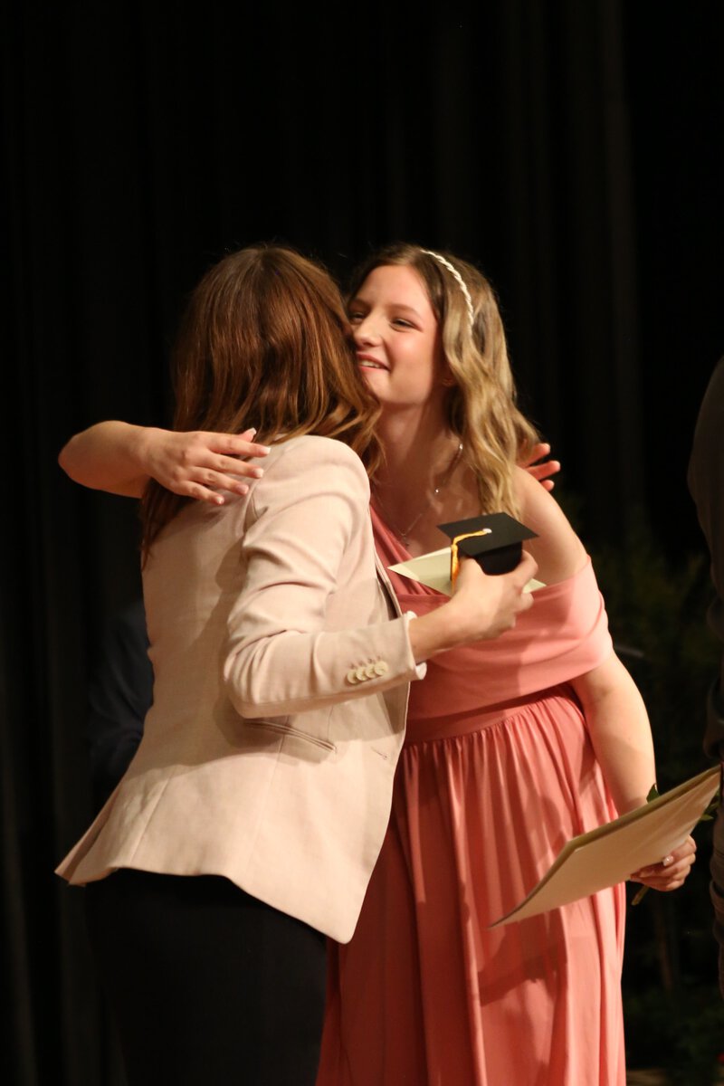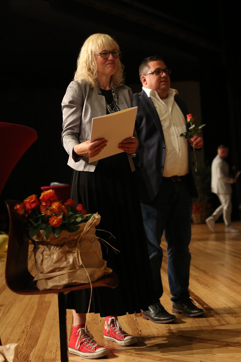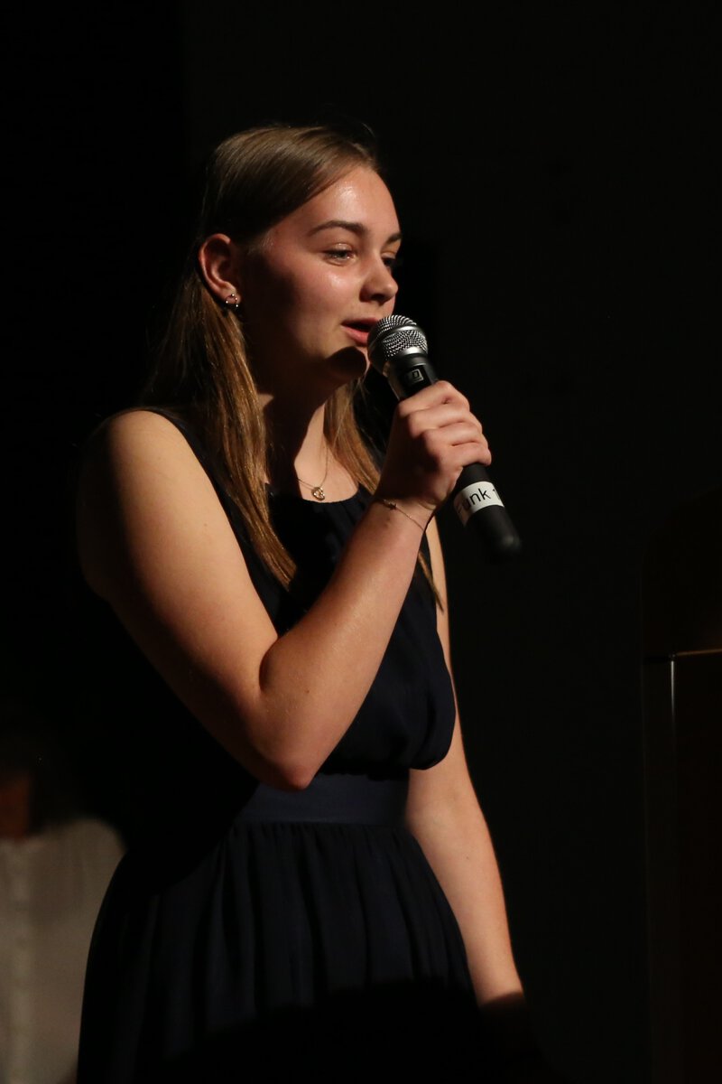 Liv und Mara verabschiedeten sich stellvetrtretend für den Jahrgang mit einer gelungenen Rede von Lehrkräften und Mitschüler*innen und auch die Schülersprecherin sowie die Elterpflegschaftsvorsitzende kamen zu Wort.