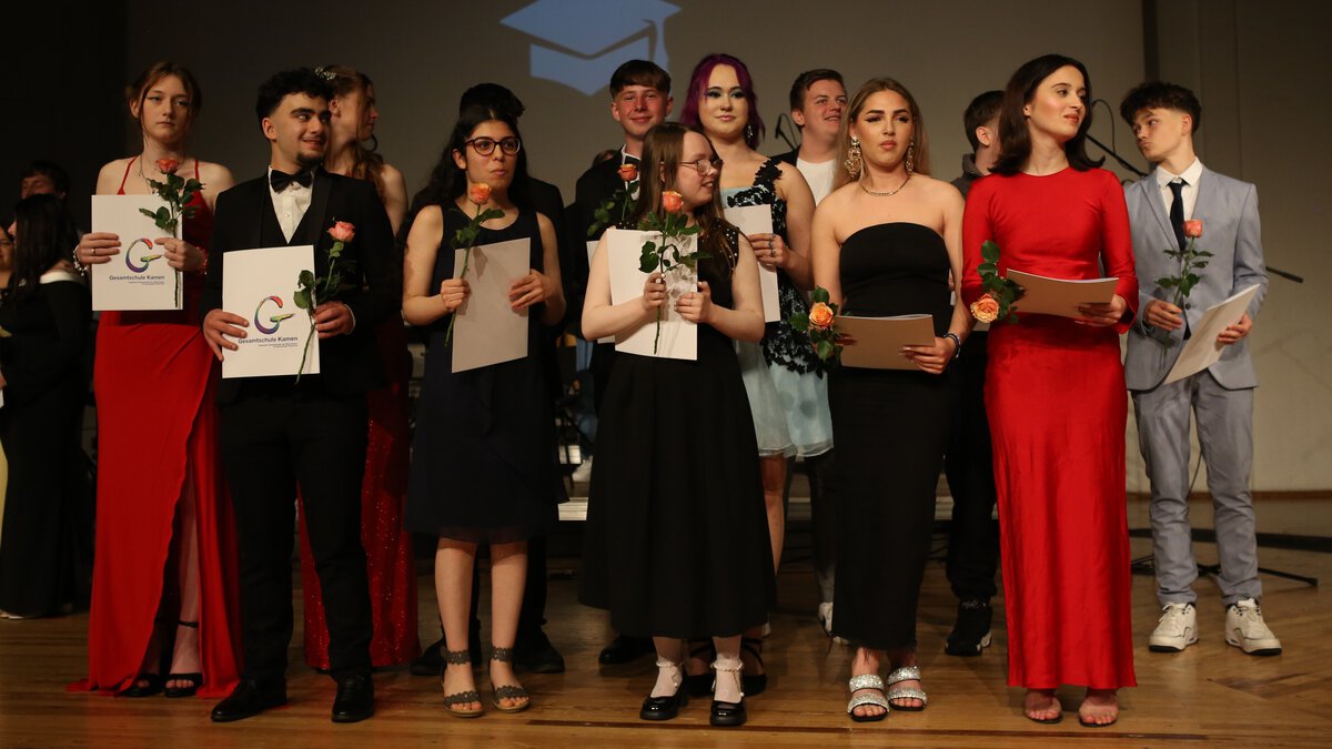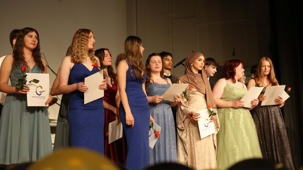 Für die meisten unserer 10er*innen endete mit diesem festlichen Akt ihre Schulzeit an unserer Gesamtschule. Sie werden entweder eine Ausbildung beginnen oder ihren Weg am Berufskolleg fortsetzen. Für rund ein Drittel unserer Schüler*innen geht der Weg an unserer Schule in der gymnasialen Oberstufe weiter.
