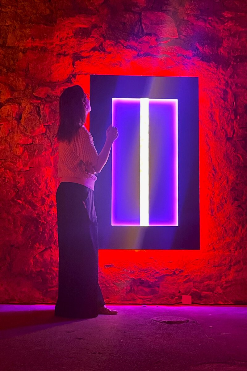 Doch nicht nur Rebecca Horns Arbeiten wurden betrachtet. Das Lichtkunstmuseum bietet zahlreiche weitere beeindruckende Installationen internationaler Künstlerinnen und Künstler. So konnten unter anderem Werke von James Turrell, Olafur Eliasson oder Mischa Kuball erlebt werden, die mit Licht, Raum und Wahrnehmung experimentieren und das ehemalige Industriegebäude auf faszinierende Weise transformieren.