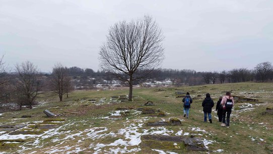 Nach den bedrückenden Tagen in Oświęcim ging es zum Abschluss der Fahrt nach Krakau, wo wir Mitten in Kazimierz im jüdischen Viertel wohnten, das von seinen vielen Synagogen und jüdischen Lokalen geprägt ist – jüdische Religion und Kultur sind hier wahrlich spürbar! Gleichwohl stand auch in Krakau die NS-Geschichte im Mittelpunkt. Bei einer Stadttour wurde uns die Geschichte des jüdischen Krakaus aufgezeigt, wozu während der NS-Zeit auch das Ghetto gehörte. Sprachlosigkeit hinterließ bei einem nachmittäglichen Spaziergang die Begehung des Geländes des ehemaligen Konzentrationslagers Plaszow: Man hatte das Lager auf zwei jüdischen Friedhöfen errichtet, die Grabsteine zur Befestigung der Lagerwege genutzt.