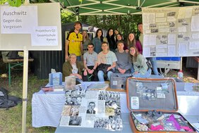 Die Schüler*innen unseres Projektkurses „Auschwitz – Gegen das Vergessen“ haben sich am 27. Mai 2023 mit einem Infostand am „Tag der Vielfalt“ der „Bürger*innen gegen rechts“ beteiligt. Die ausgestellten Projektarbeiten unserer Schüler*innen zogen dabei großes Interesse auf sich. An unserem Stand auf dem Außengelände des Freizeitzentrums Lüner Höhe kam es bei bestem Wetter zu vielen guten und interessanten Gesprächen über die Erfahrungen der Schüler*innen in Auschwitz sowie den Umgang mit dem dort Erfahrenen.