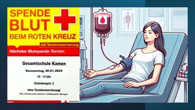 In der Zeit zwischen 10 und 13 Uhr haben Schüler*innen und Lehrer*innen der Gesamtschule Kamen wieder die Möglichkeit im kleinen Konferenzraum der Schule Blut zu spenden und wie in den letzten Jahren auch eine Stammzellen-Typisierung vornehmen zu lassen.