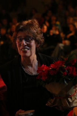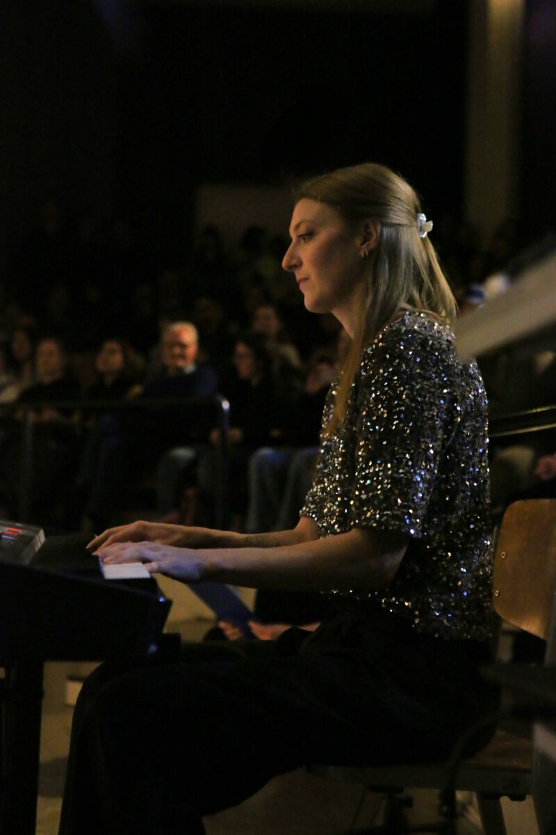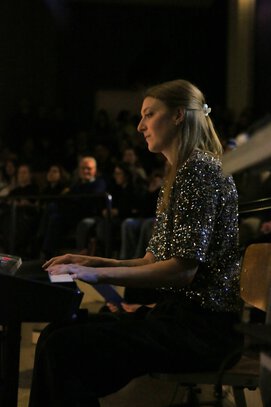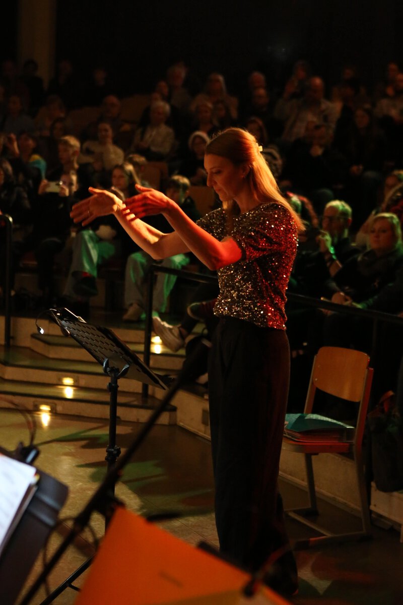Doch nicht nur für die 8f war es das letzte Weihnachtskonzert. Auch für Frau Hüls, die jahrelang nicht nur Musikklassen begleitete, sondern auch die Tonstudio-AG betreute, hieß es Abschied zu nehmen, denn sie wird zum Februar 2026 in den Ruhestand gehen – Grund genug für die Schüler*innen und Kolleg*innen aus der Musik-Fachschaft Frau Hüls ihren herzlichen Dank für ihren großartigen Einsatz auszudrücken.