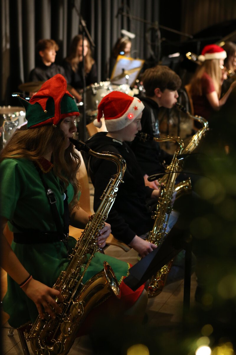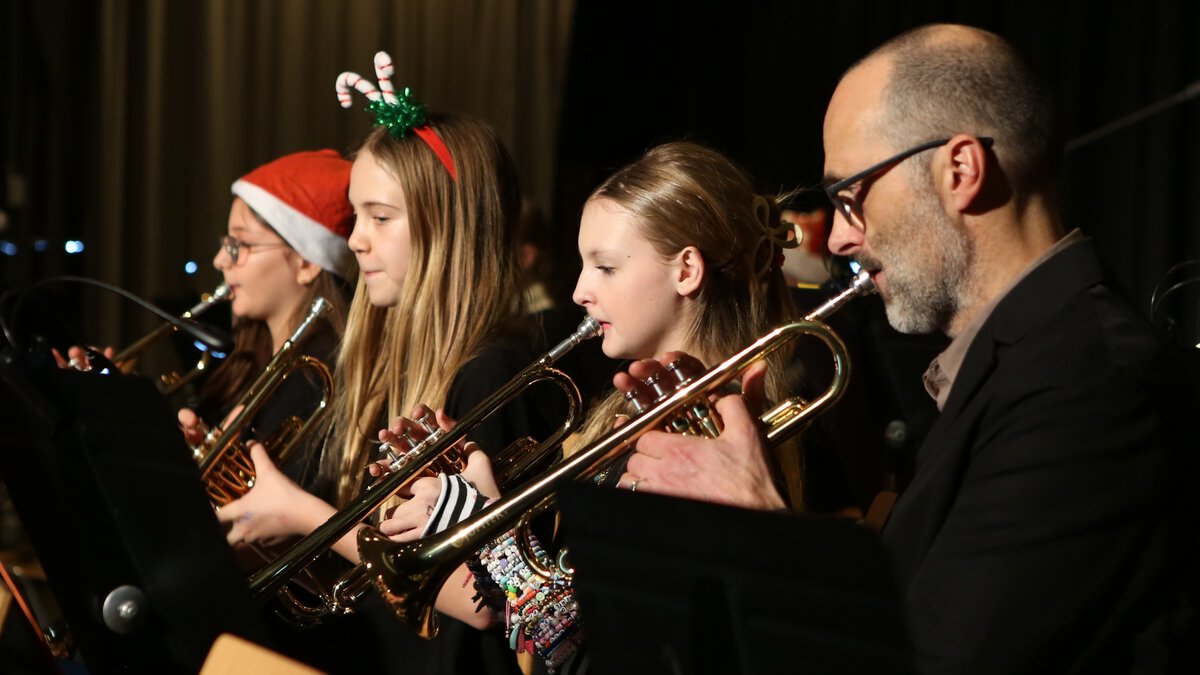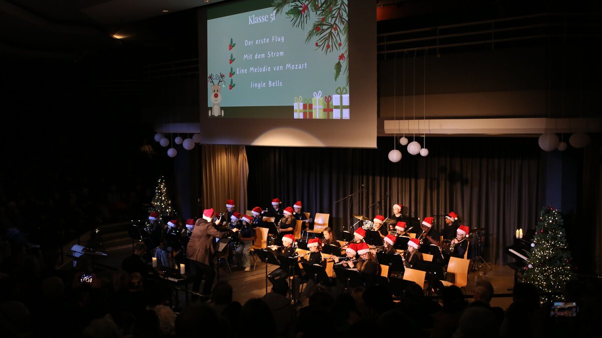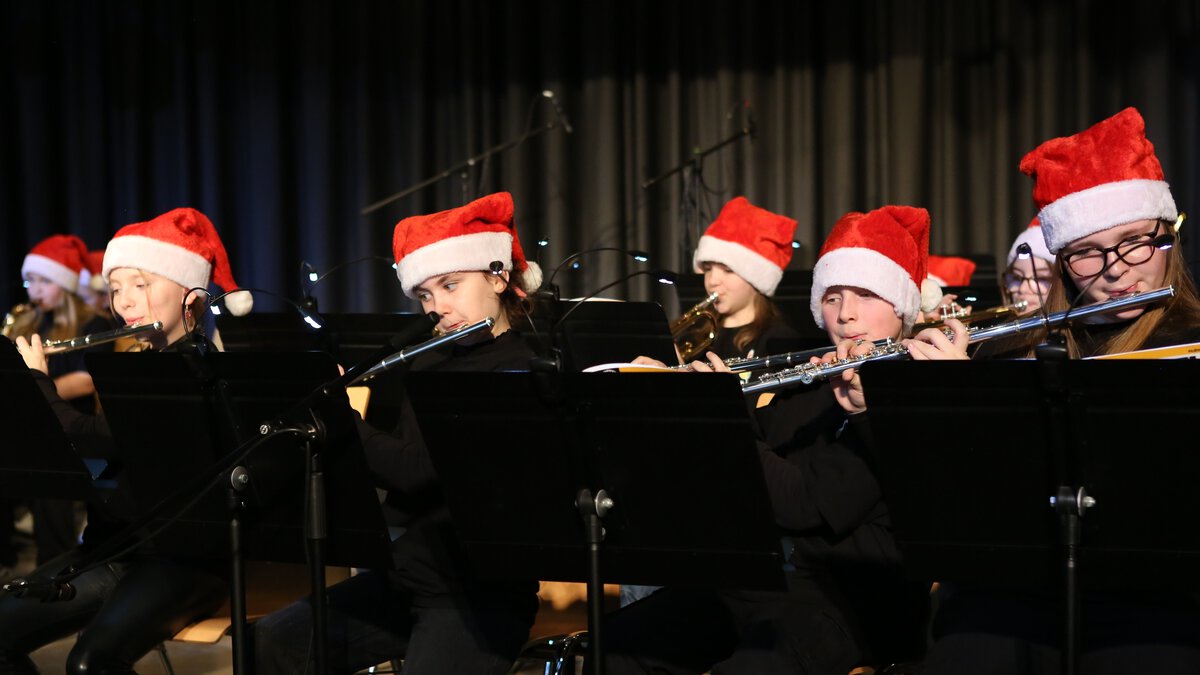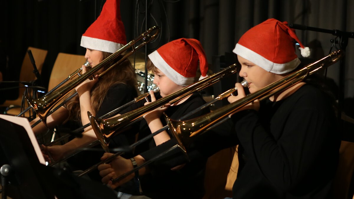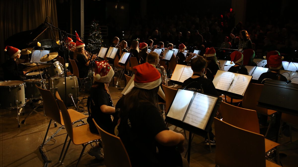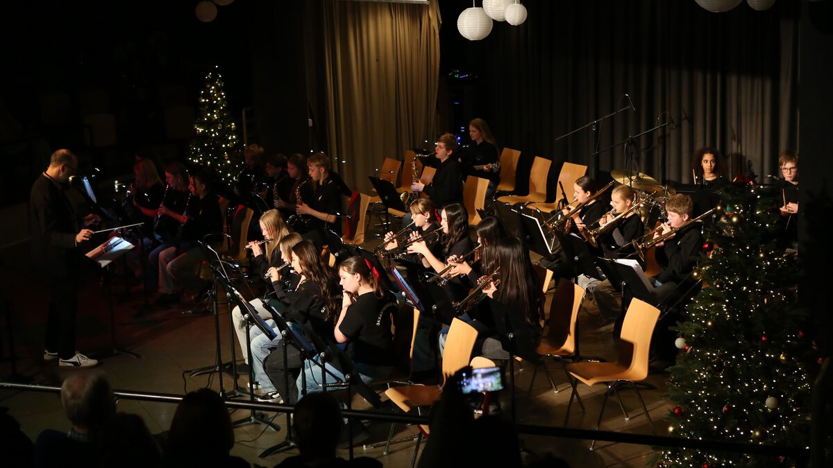 Große Erleichterung in unserer Schulgemeinde: Das traditionelle Weihnachtskonzert konnte doch noch stattfinden. Nachdem das Konzert wegen des wenige Tage zuvor verübten Einbruchsdiebstahls, bei dem rund 25 Instrumente erbeutet wurden, abgesagt werden musste (Wir berichteten, siehe Homepage vom 08.12.2025.), machte es eine Welle der Unterstützung und Solidarität möglich, die Instrumente von anderen Schulen auszuleihen. Zudem wurden die Musikklassen mit großzügigen Spenden finanziell unterstützt.
