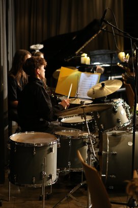Unter dem Eindruck des furchtbaren Todesfalls eines unserer Schüler eröffnete unsere Schulleiterin Frau Ludwig das Konzert mit einfühlsamen Worten und die Bigband widmete ihr erstes Musikstück dem verstorbenen Schüler.