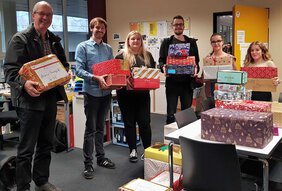 „HandS – Help and Solidarity“, so lautet das Motto der diesjährigen Weihnachtspäckchen-Aktion der Organisation „Building One World“ aus Winterberg. Auch in diesem Jahr haben sich wieder mehr als 30 Schüler*innen einer sechsten Klasse sowie Schüler*innen aus dem 12. und 13. Jahrgang unserer Gesamtschule beteiligt. Dazu haben die Schüler*innen Geschenke in Schuhkartons für Menschen mit Behinderung gepackt.